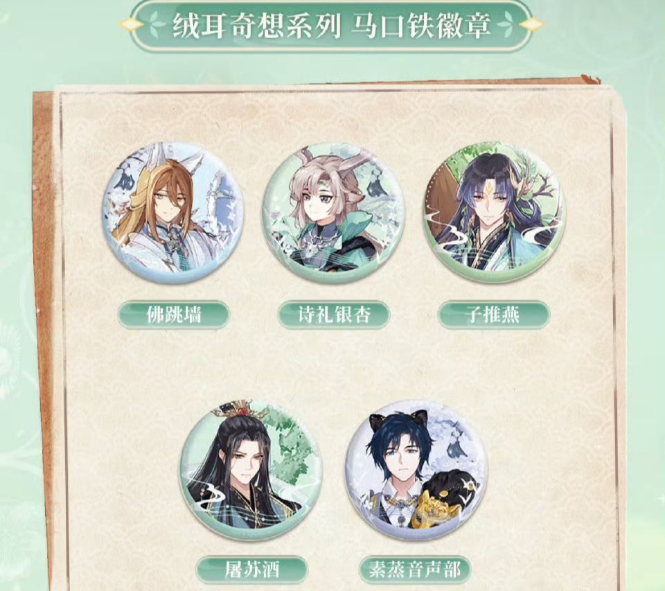 周边包含马口铁徽章,色纸,食魂契约书,镭射票,桌游等,价格10-55之间