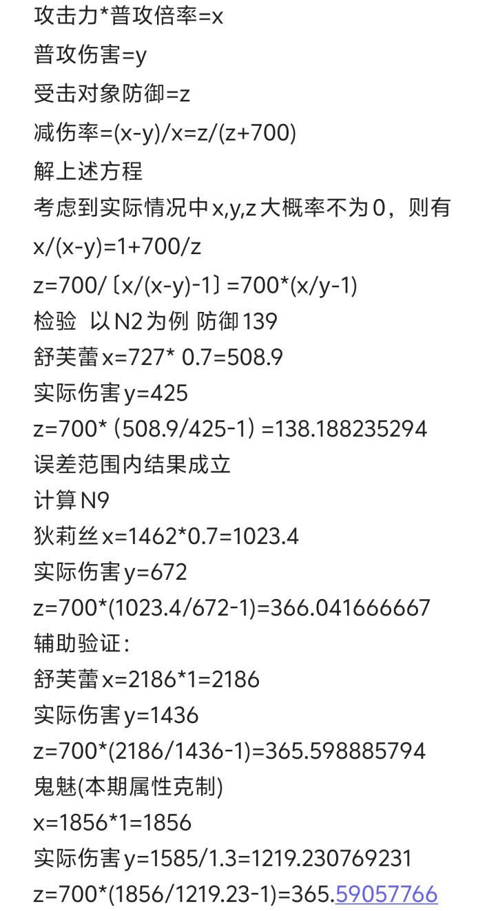 只算了本期N9(银翼审判者)的防御数值,实际上防御数值并不直观,直观的是boss防御减伤率366/(366+700)=0.343339587,约为34.3%