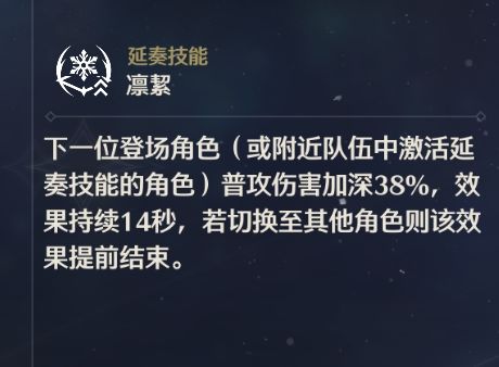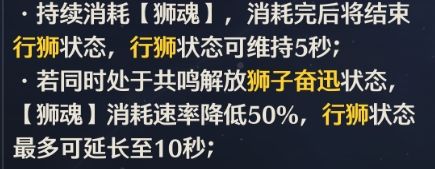 实战中最好以散华起手,先攒满qte,触发凌阳qte入场,依靠变奏技能可以充满40%的动能条,然后开启共鸣解放,提供60%的动能,同时可以为自身提供14秒的冷凝伤害加成。但是不要直接进入行狮状态。由于行狮状态只有5秒,但是在开启共鸣解放后可以延长最多5秒,因此可以达到最多10秒的行狮状态。