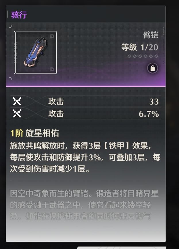 再然后是骇行。其他四星臂铠作为输出来说不太合格,在没有以上的前提下,有什么用什么。