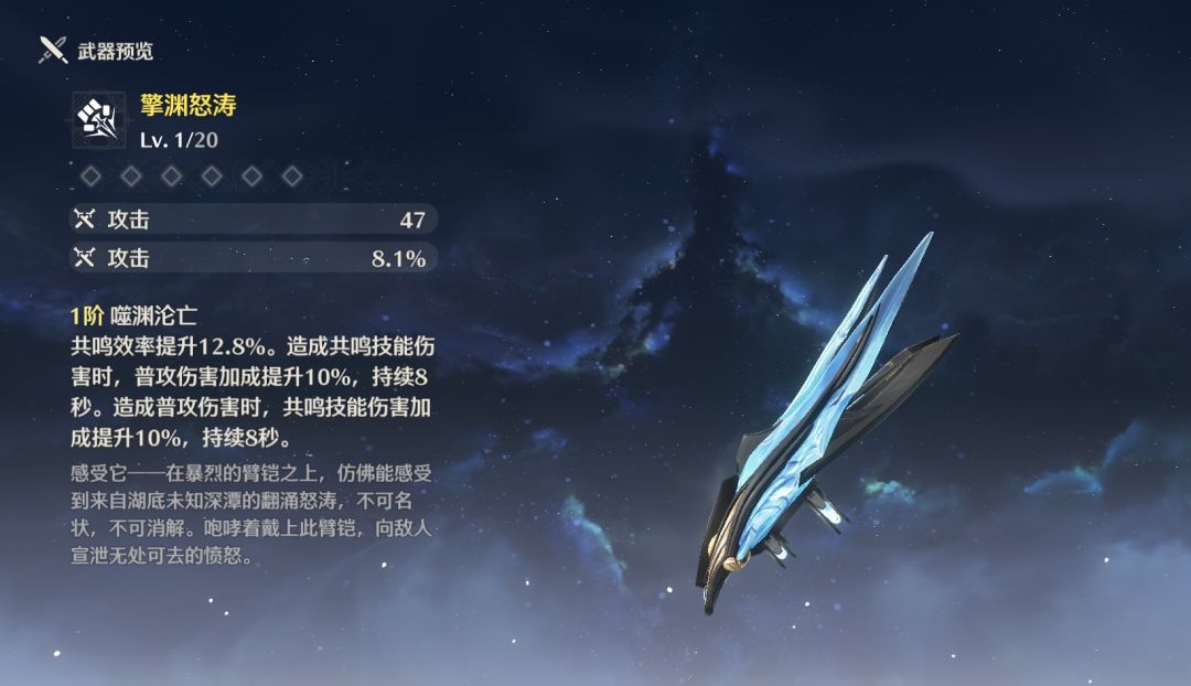 首先是武器方面,首推常驻五星武器秦渊怒涛。由于没有其他更好的臂铠,所以秦渊怒套是第一优先级。