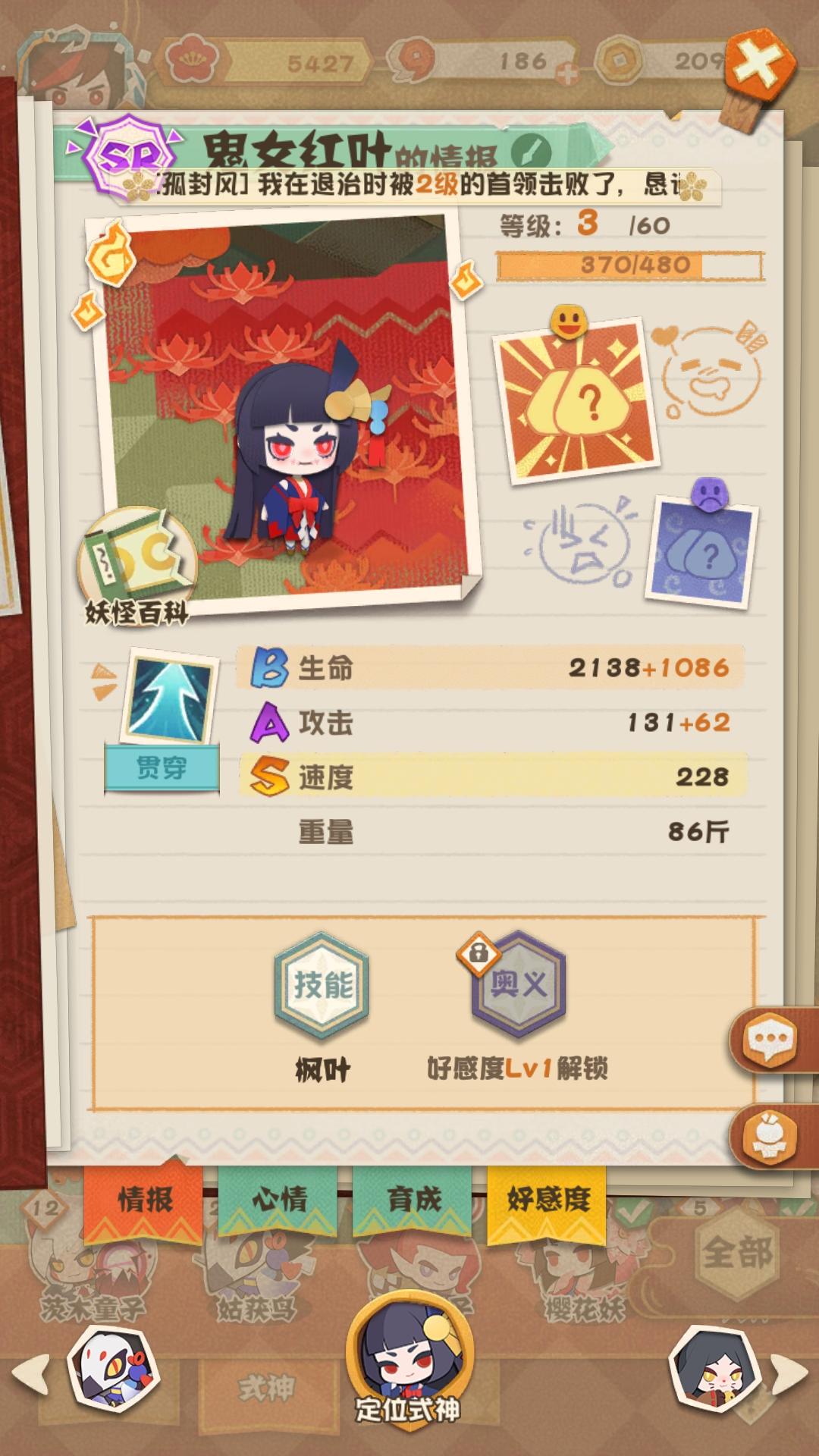 求助,我家的姑获鸟不见了到哪里去找她?不是离家出走,而是没打工也无法在庭院里找到她,也不能定位,显示如下图,用旁边的红叶对比一下,红叶就可以定位找到她