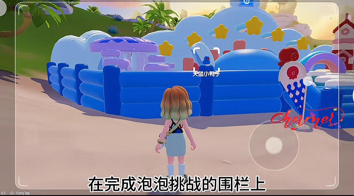 天蓝色鸭子拍照任务位置:完成泡泡挑战的围栏上