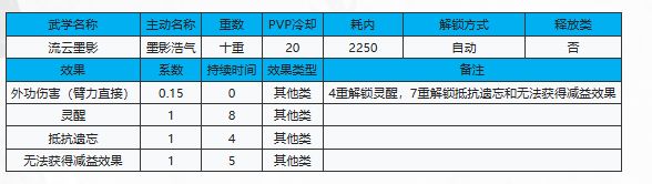 技能解析:墨影浩气:使用条件:[臂力]不低于45、[身法]不低于60、准备[流云墨影]为轻功