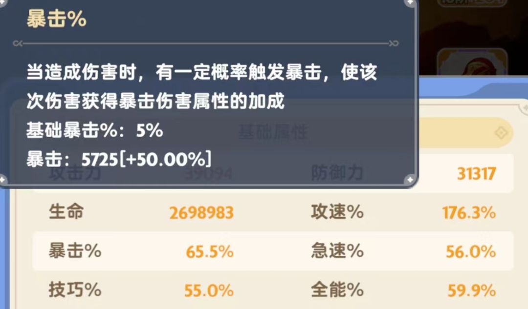 基础值%,也就是下图的基础暴击%:5%