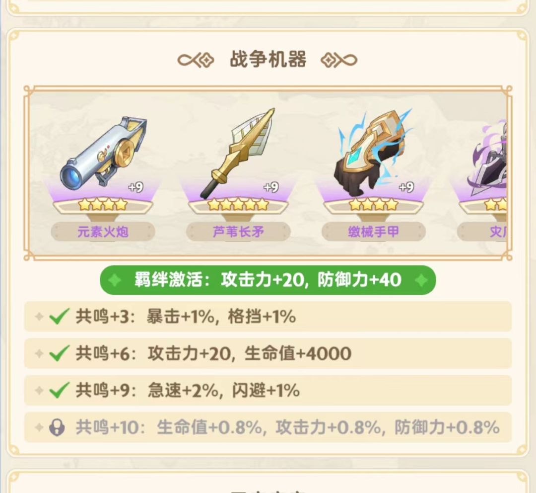 秘宝:无视品质全6共鸣,急速全能羁绊9共鸣;