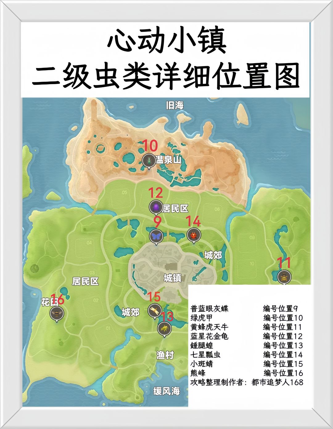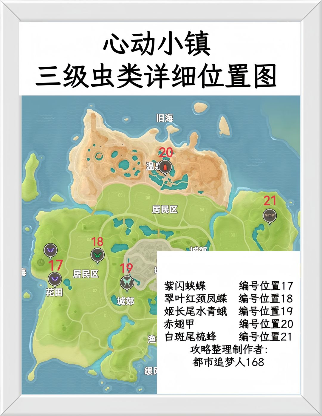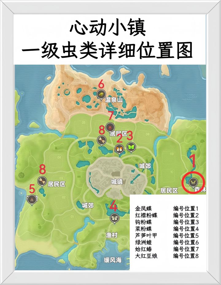 心动小镇捕虫攻略1-7级虫类详细位置图。