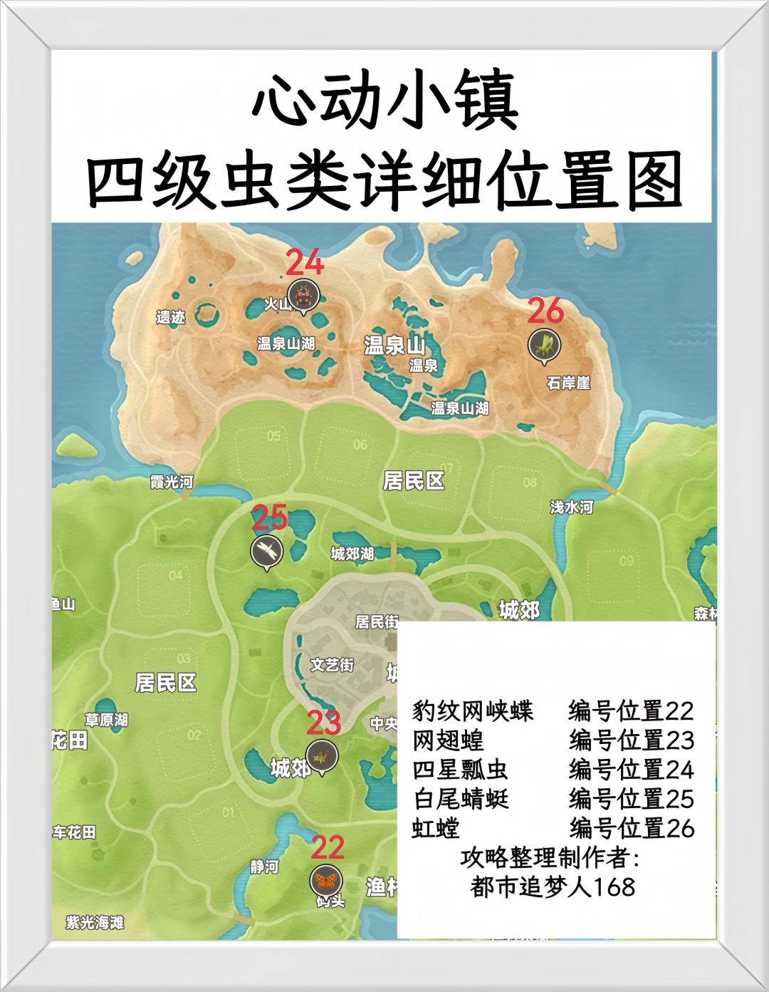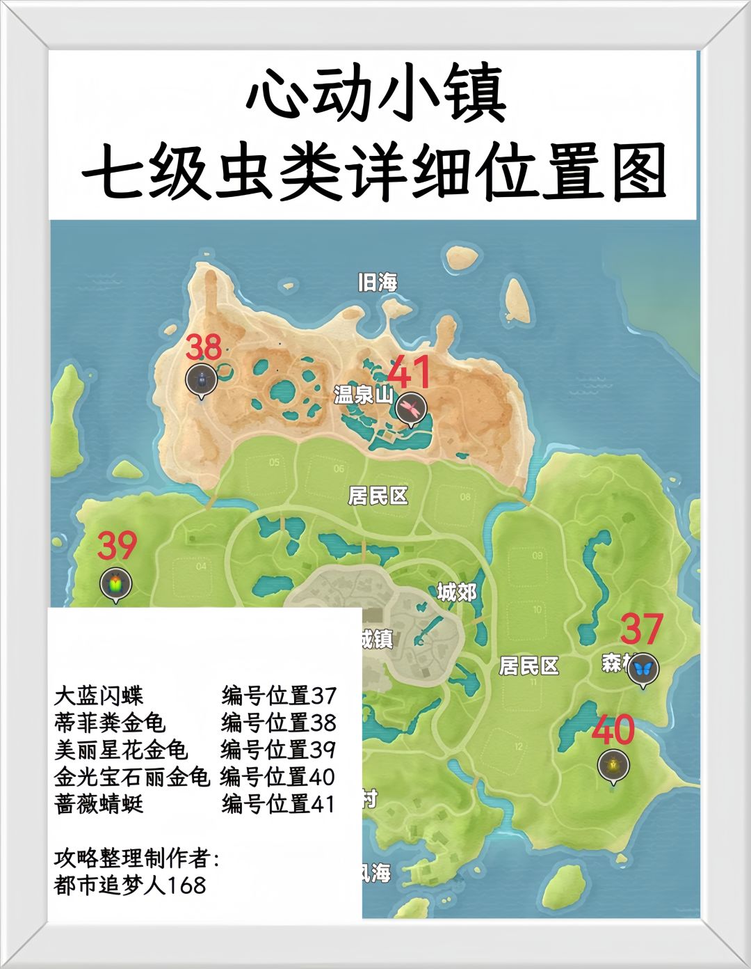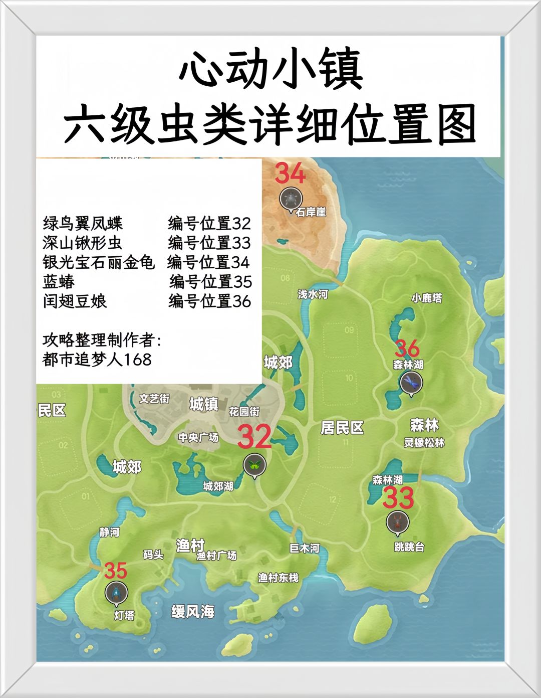 心动小镇捕虫攻略1-7级虫类详细位置图。