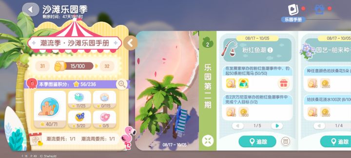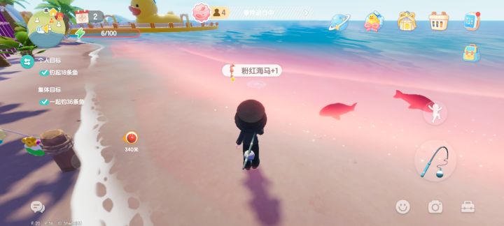 但是晚上18点之后没有海马,(这个时间亲测竹䇲上钩率也很低不知道为什么),我在这个时间钓到的小型鱼只有沙丁,粉海马和大西洋鲭。大西洋很好判断,我在8级的时候钓粉海马和沙丁鱼线是不变色的,只有大西洋鲭反复拉红,如果等级低一些也没关系,可以从拉钩难度上轻易判断,如果拉到了难拉的(或者不小心钓到大鱼)就可以直接放线节省体力,这样钓到的小型鱼就只可能是粉红海马\沙丁鱼,大大节省时间,没体力直接砍点旁边的椰子啃啃,基本上参加三次左右发展家发起的鱼潮(每次1小时)就能搞定(需要耐心!)