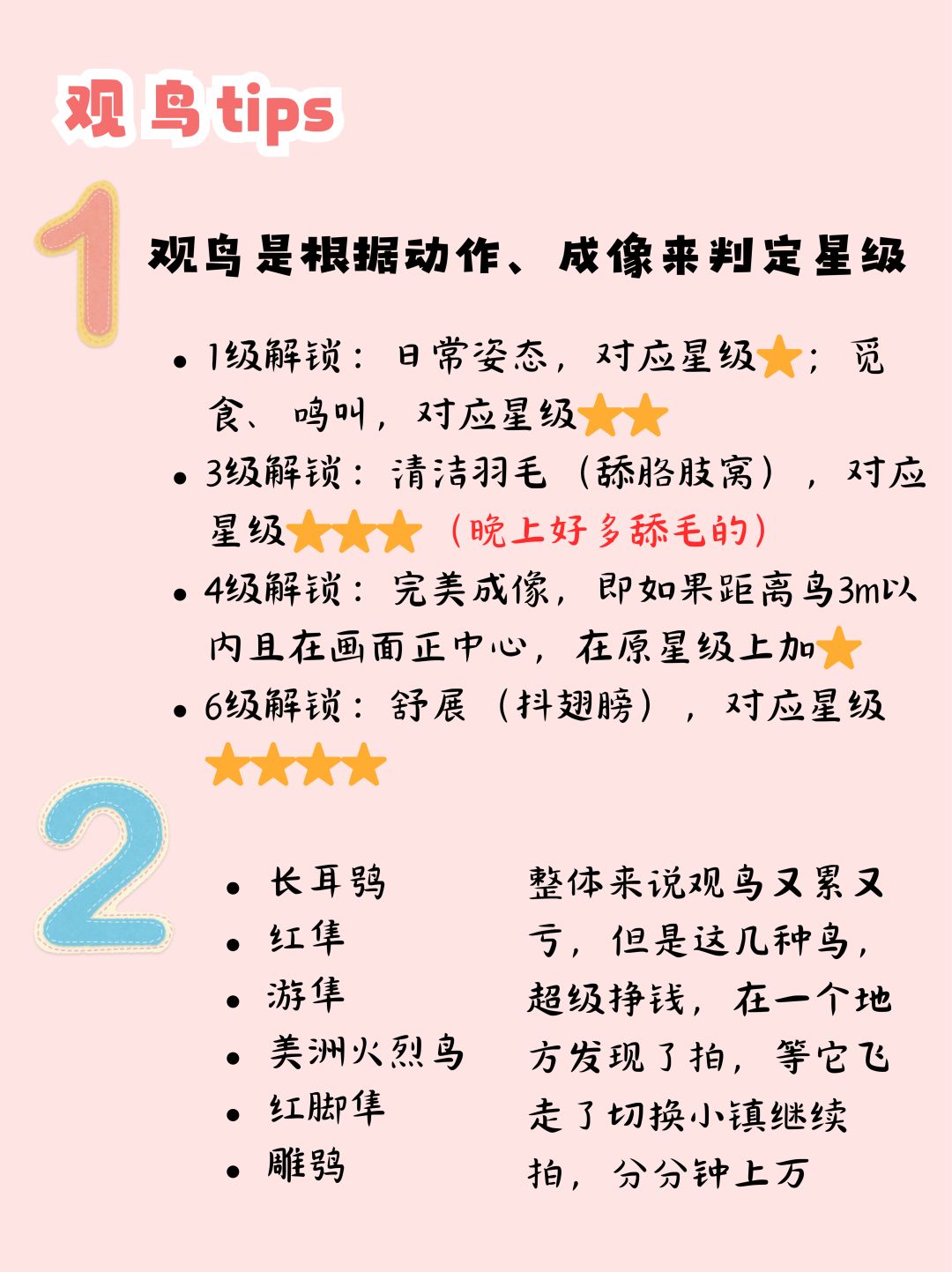 4级解锁:完美成像,即如果距离鸟3m以内且在画面正中心,在原星级上加⭐