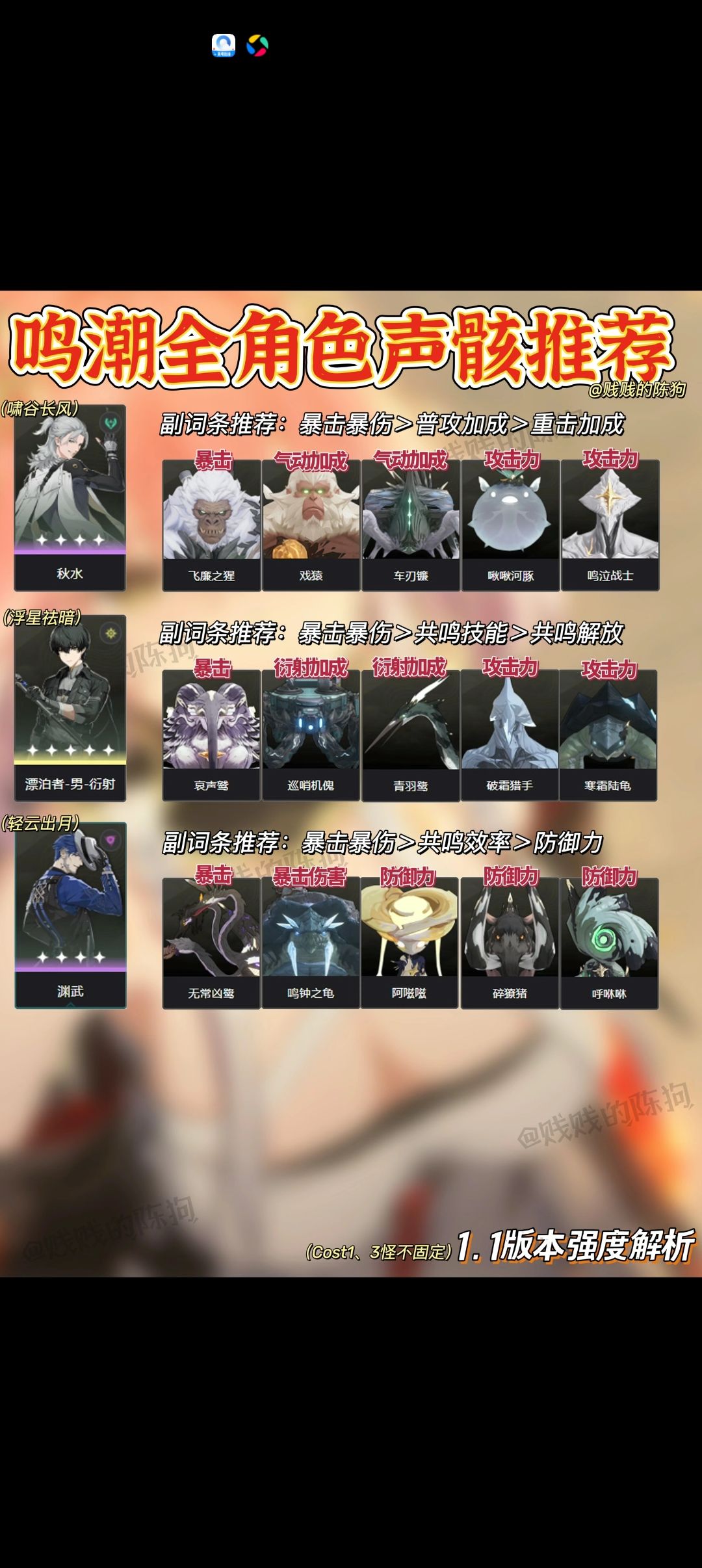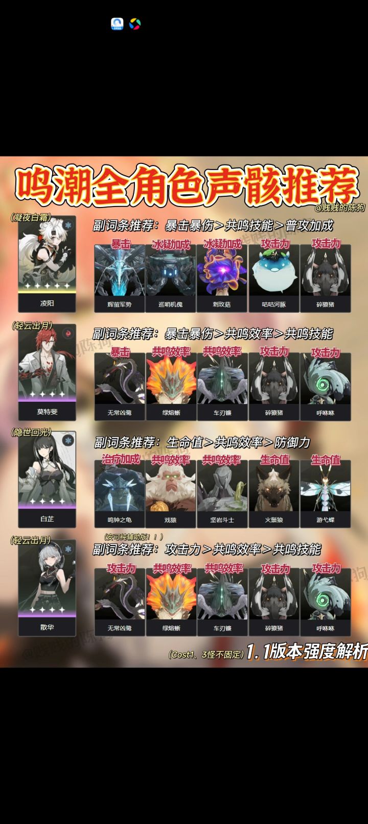 鸣潮 | 1.1版本全角色骸骨推荐!新手速来