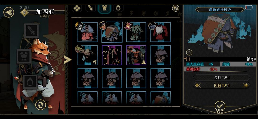 这个装备,我觉得是目前的中场角色的最优选。中场角色要叠速度来保证抢先手来秒杀敌方的高伤脆皮(点名小队长战里一狙暴击41打后排的弩手),自带的闪避加成也可以躲大狗的棒子。可以说,没有一点没用的加成。最终治疗的减少四舍五入等于没有,而且一般都靠猫娘奶,要靠懦弱的心多用来脱离濒死,奶量其实并不重要。