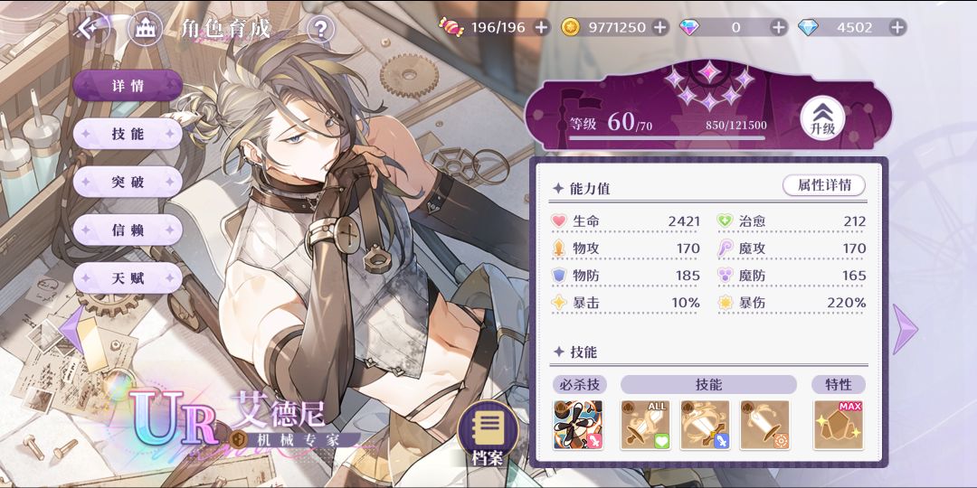 必杀技:对敌方单体造成地属性物理伤害,并给予我方全体小加速度(加速充能以便下一波必杀技的使用,这个技能我倒是还满意的)