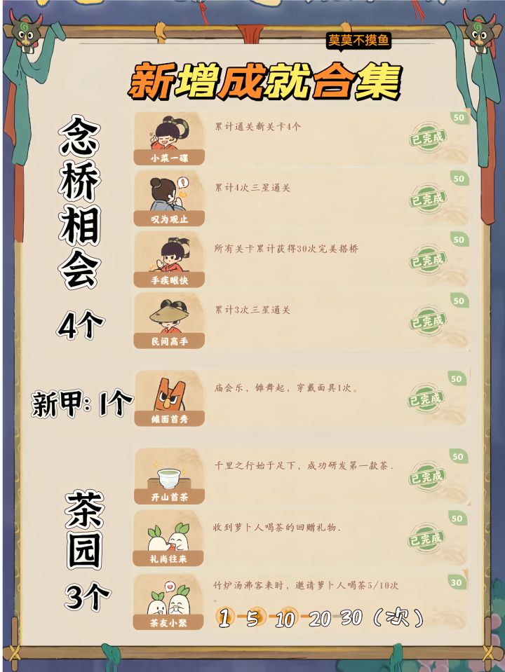 5、茶园新增成就3个