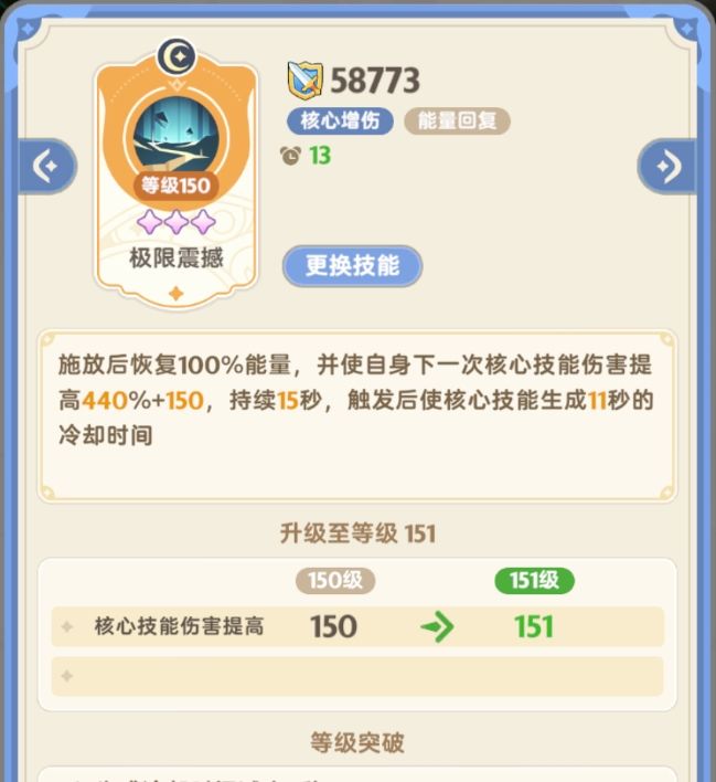 此时,开局释放的【极限震撼】冷却马上就要刷新了,在放出第一炮以后,靠【极限震撼】的100%回能和减核心冷却马上打出第二炮