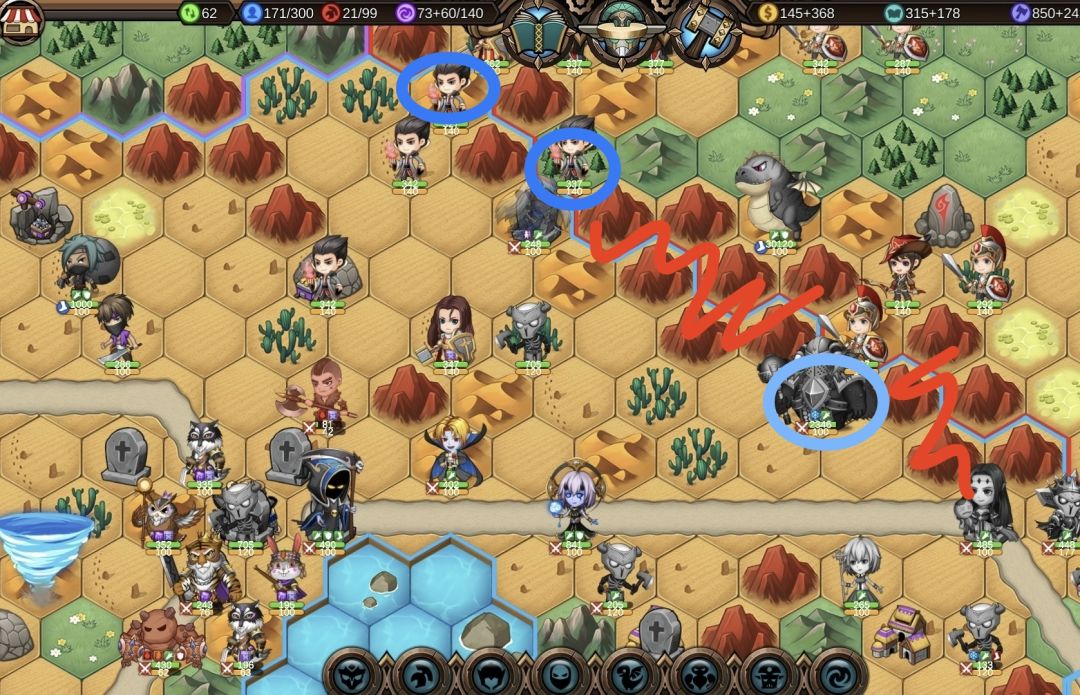 在战斗中要集中火力先打占领敌人的城堡,敌人的控制技能会大幅度降低我们的行动力和输出能力,战斗中输出单位尽量不要被控制到