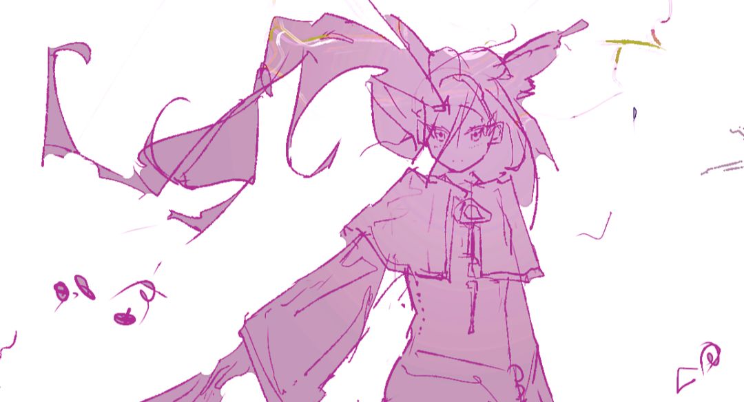 什么样的创意有特色呢? 因为个人比较喜欢天使泡泡,构思一会想到了趴在泡泡上的构图,加入一把单手剑制造反差点,在表情上就可以做文章了