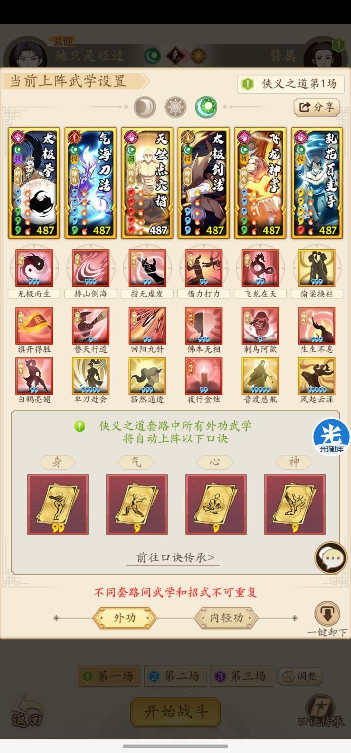 第一关,双太极。第二关,阴剑。第三关,阳奇。