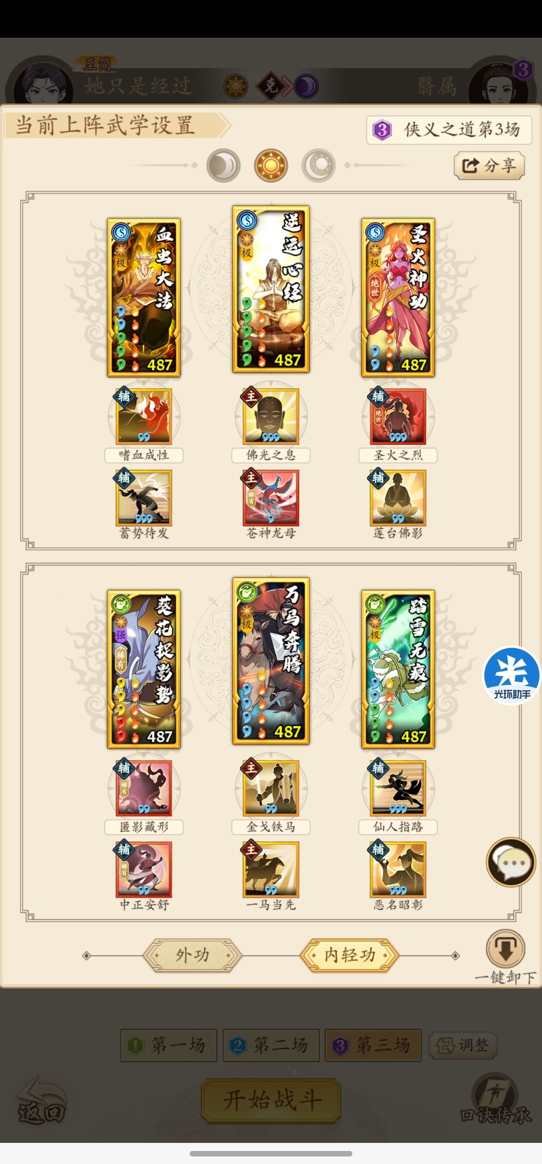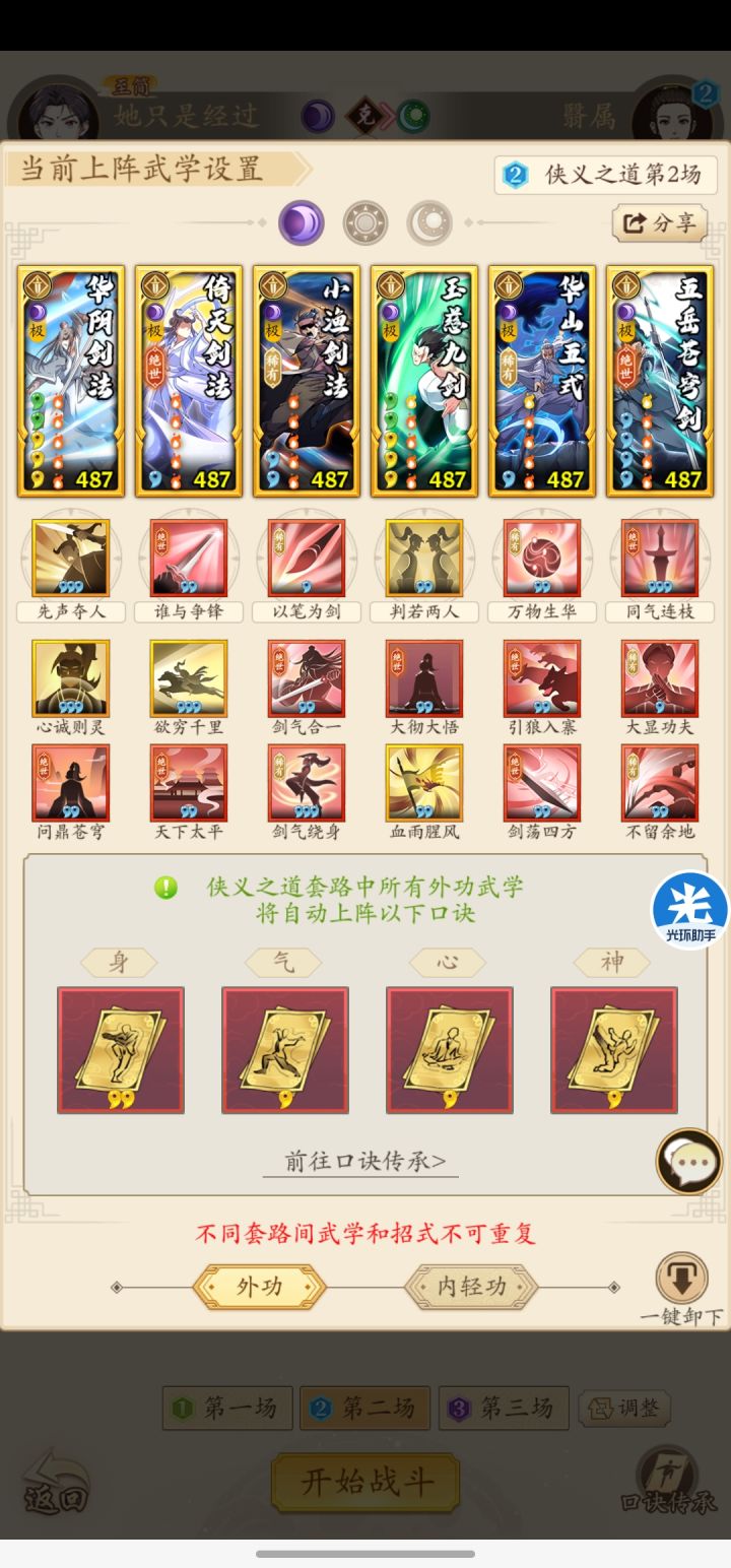 注意事项:以极低的回合数通关需要看运气,这主要和第三关阳奇的连击和暴击有关。同时第二关和第三关都是四系流派,运气好的时候回血是视觉盛宴。套路是好套路,即使不是奇门玩家或者阳奇玩家,也可以拥有类似的通关体验。