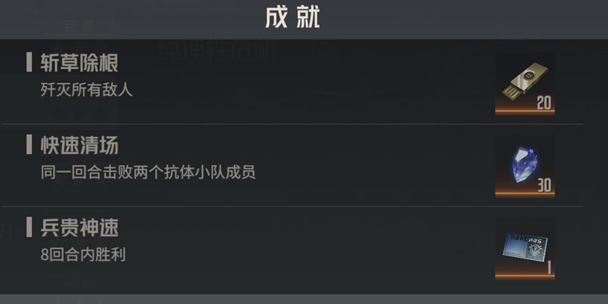 斩草除根:要求全灭敌人,此成就的关键是不要漏掉一些敌人,场上那些由于抗体小队被消灭而陷入宕机的敌人,也是我们需要消灭的目标。还有就是,所有抗体小队被消灭后就会结算关卡,所以需要确保所有其他敌人都被消灭后再消灭抗体小队