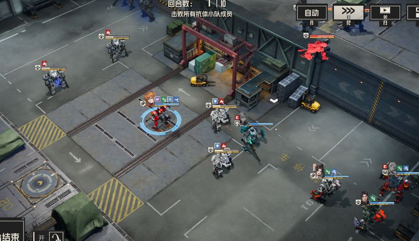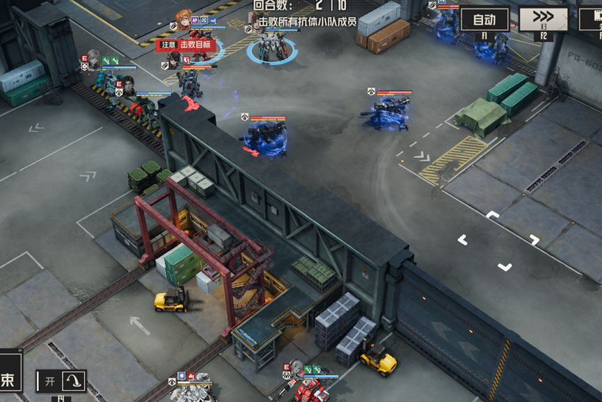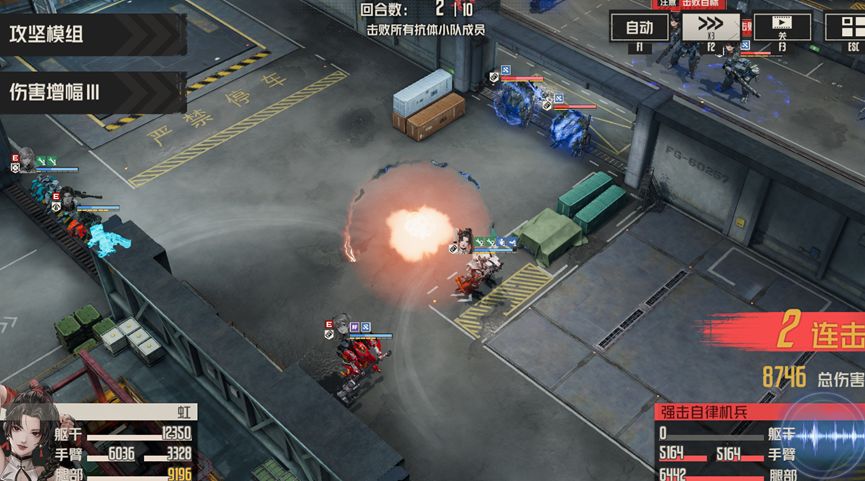 西尔维亚先手压低抗体小队成员血量,明日香补刀消灭小队成员,造成周围自律机兵宕机
