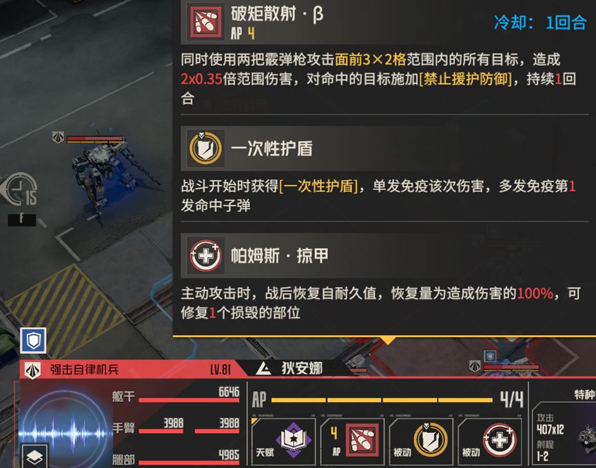 本关消灭4个抗体小队成员即可获胜,但是通常为了成就,我们需要将所有敌人一起消灭。抗体小队成员在本关中是特殊的存在,除了自身有较强的战斗力外,还拥有帕姆斯系统,并赋予周围其指挥的自律机兵同样拥有帕姆斯系统,但是只要抗体小队成员被击败,该部分自律机兵就会陷入宕机,利用这一机制,可以更容易消灭敌人。但是最后的部分敌人不能采用这种办法