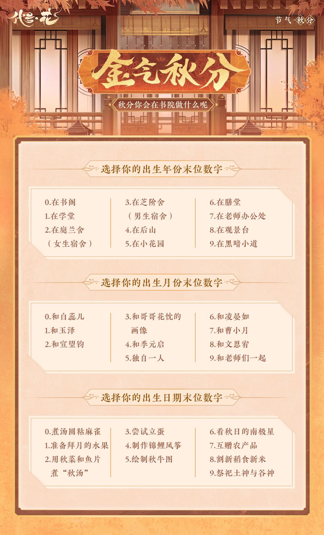 9月22日-9月24日,在本帖内回复 “个人出生年月日对应上表的结果” 即可参加活动