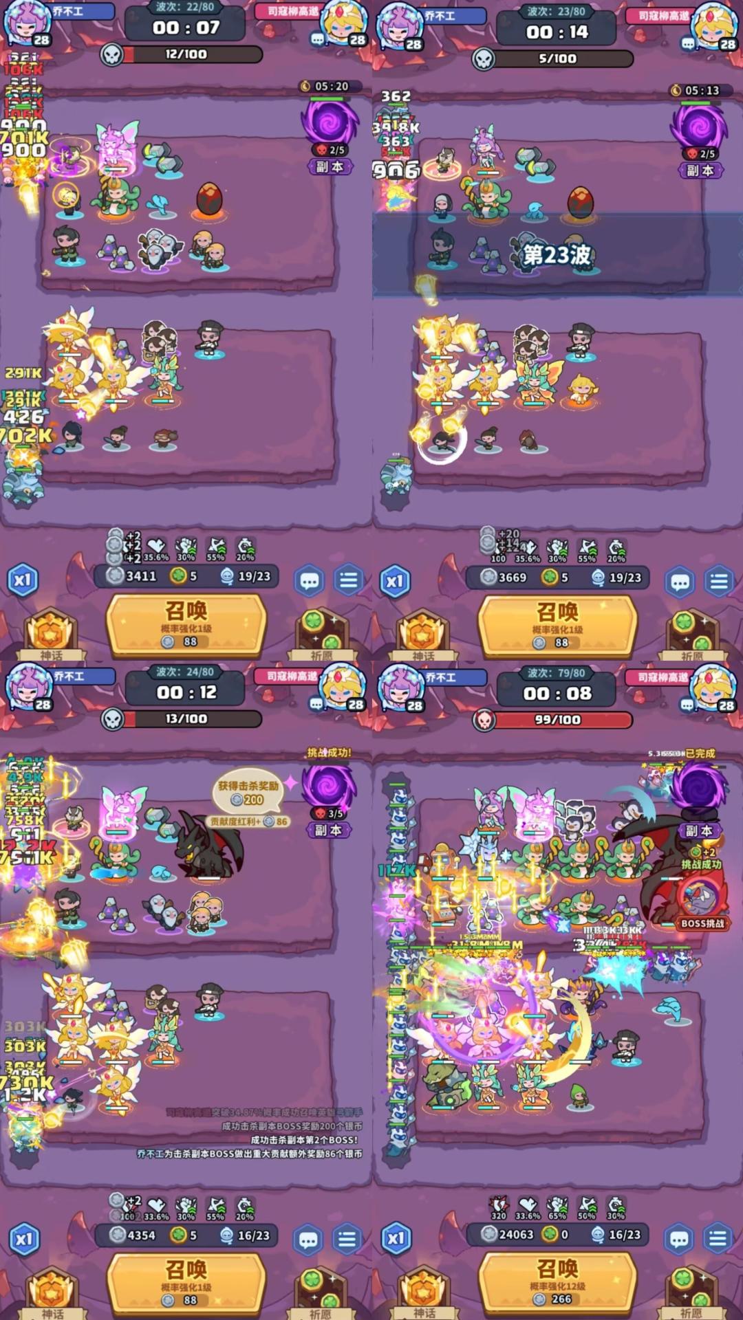 此时开始消费银币(也可以熬到15波,召小boss之前),不要强化“概率等级”,直接召唤。