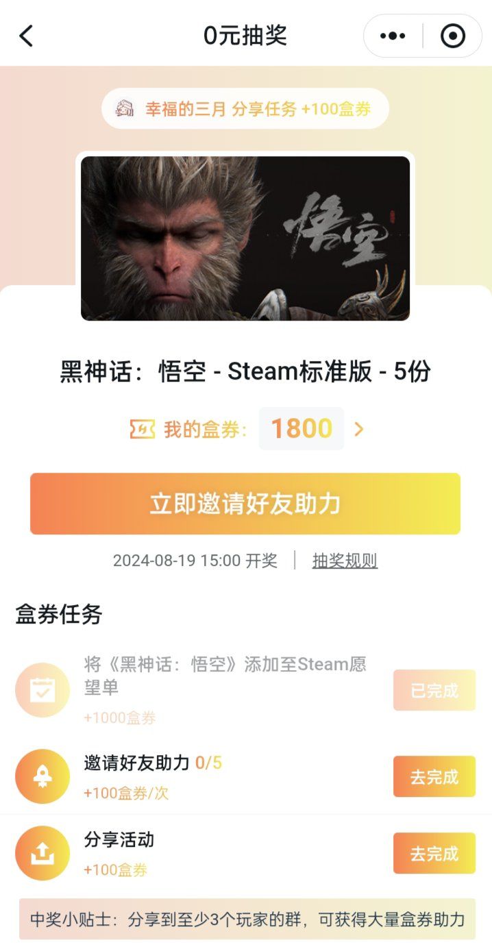 以上不仅仅只是黑神话悟空抽奖,以后还可以参加其他抽奖的活动,免费获得,何乐而不为呢?