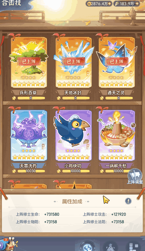 分合击天骄共战,一招一式皆是神通!一念原作中经典招式都融进了修士主动技能上,那还有没什么天骄不知道的在招式?必须有!《一念永恒:少年追梦》合击技由多个修士组合发动,战斗中达一定条件后触发,除了战斗中的直伤输出,还会有一定的辅助效果,能够快速提升阵容战斗力。