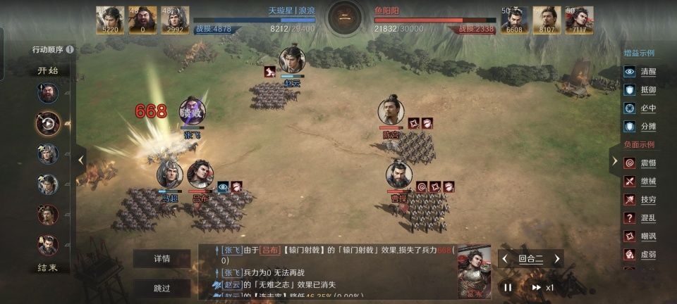 特别鸣谢给本文提供创作素材的玩家朋友,他在游戏里的ID名为“鱼阳阳”。吕布、陈宫和曹操的白门骑组合,在鱼阳阳这里变成了白门弩。关键是吕布,从骑兵变成了弩兵,这下是真的辕门射戟了。战斗仅仅进行到第二回合,对面五虎骑组合的张飞便被吕布请出了场外。赵云和马超也就算了,吕布辕门秀射术的时候,张飞本人可在场,这是真的伤害性不大,侮辱性极强啊!弩兵状态的吕布是如何施展威力的,接下来的段落将做详尽解析。