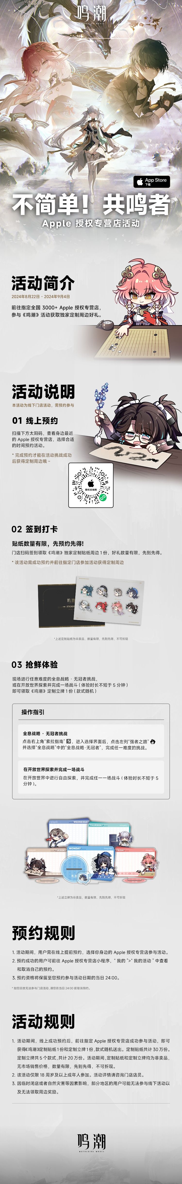 《鸣潮》携手全国 3000+ Apple 授权专营店开启线下「不简单!共鸣者主题活动」。