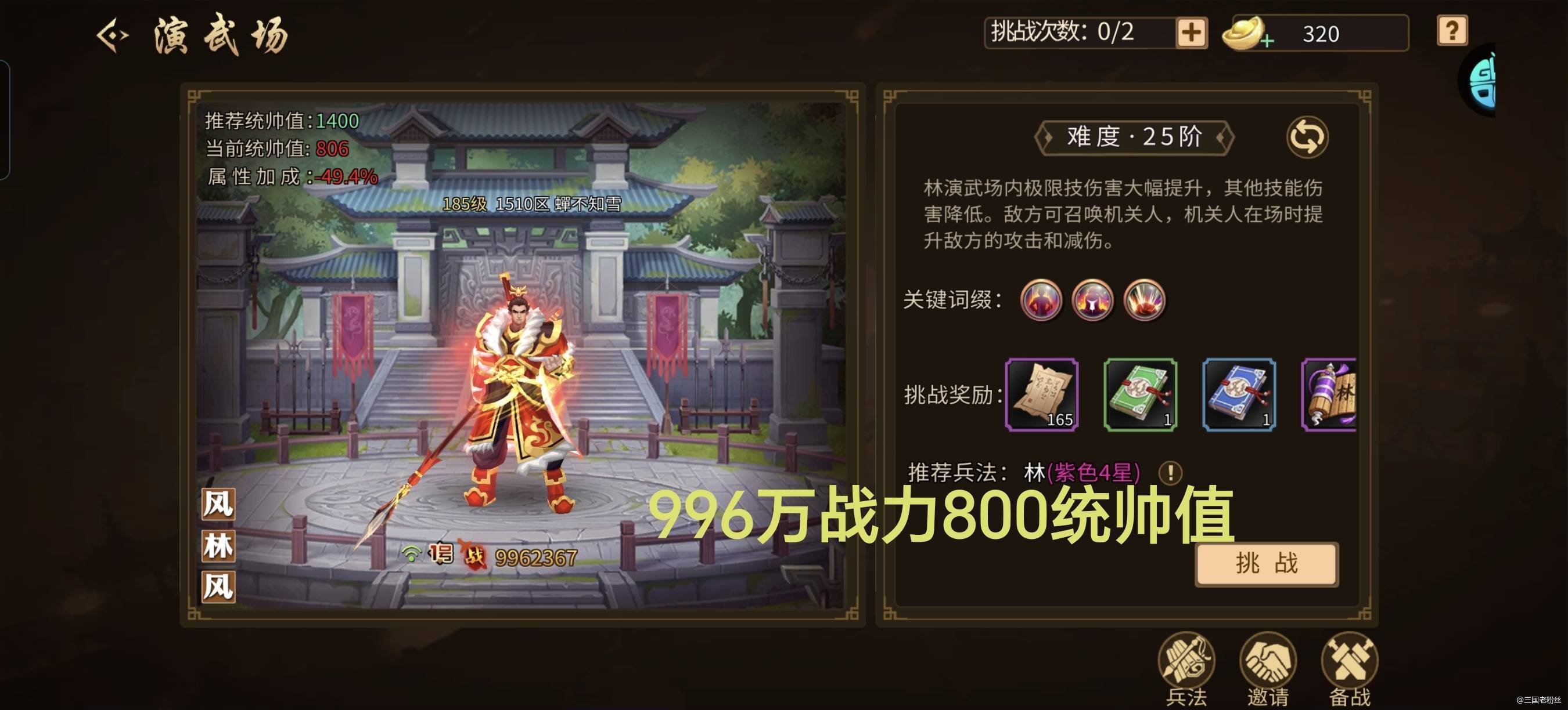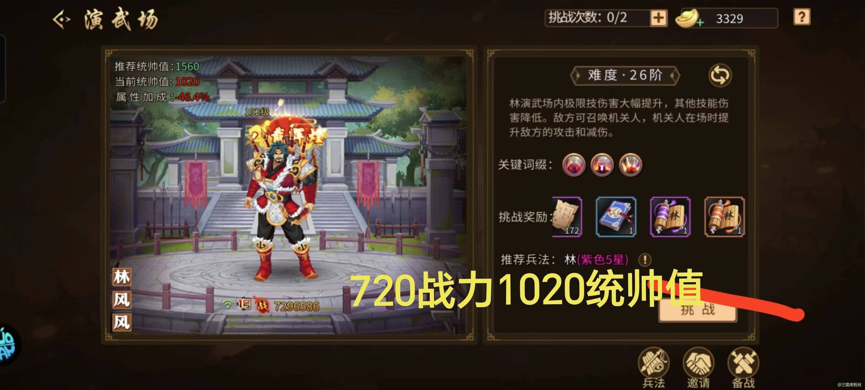 通过我的测试,我估计战力900到1000的,统帅值有个1300以上,就可以打26。