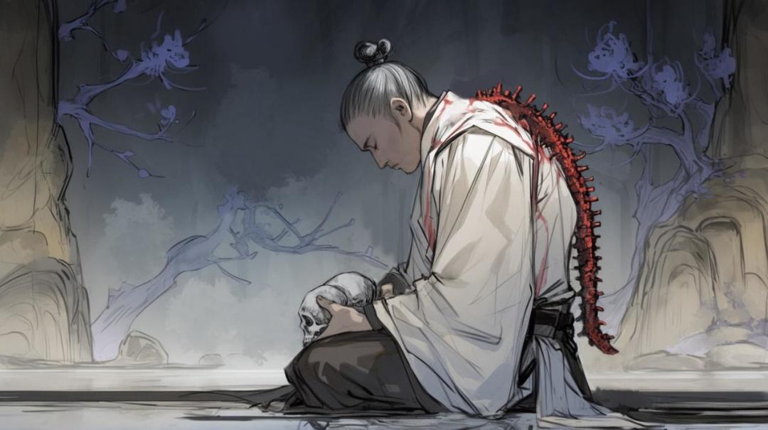 仪式结束,祭台上只剩下一片死寂。修士们拎着一条脊髓满意地离开了,只留下阿珍一个人,跪在儿子破碎的肢体旁。