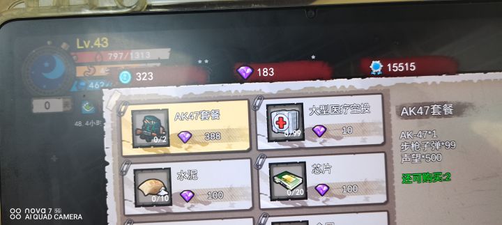 前期玩家可以造个弩箭 (大概60多发)和散弹枪(只能发100发) AK-47前期养不起的 因为 只能发300发子弹,其他的话可以弄武士刀或高尔夫球杆