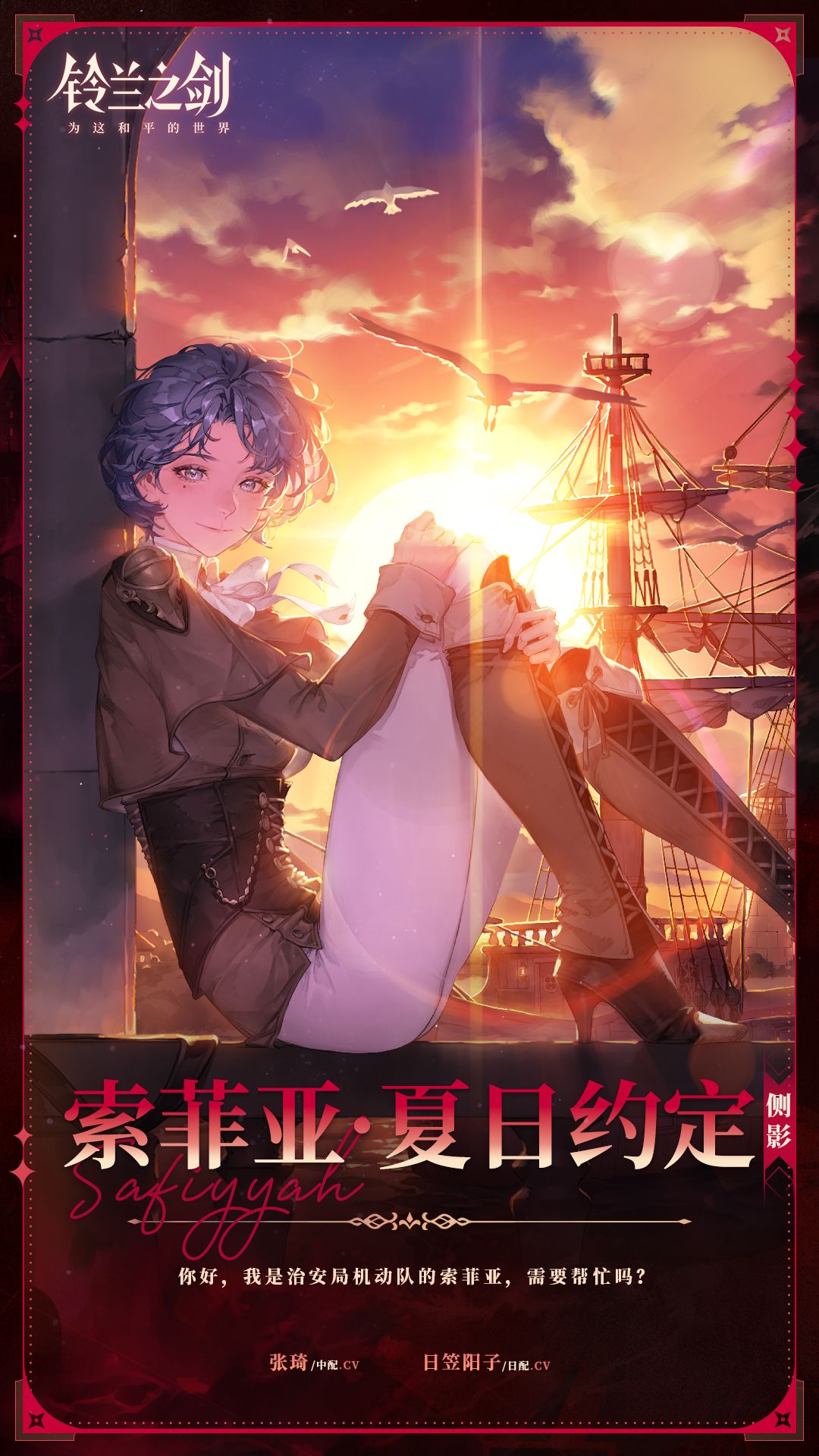 「永不分离的约定」初遇限时邂逅将于 2024/08/23 12:00 - 2024/09/05 23:59 开启,全新侧影角色「索菲亚·夏日约定」邂逅获取概率将大幅提升!