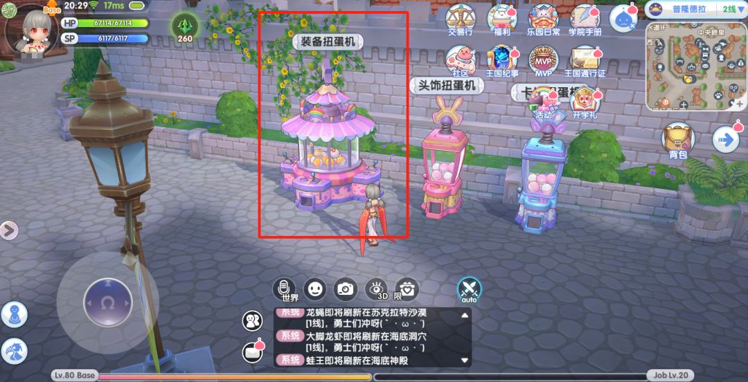 或者点开右上角小地图,在【普隆德拉】找到【扭蛋机】-【准它社扭蛋机】。