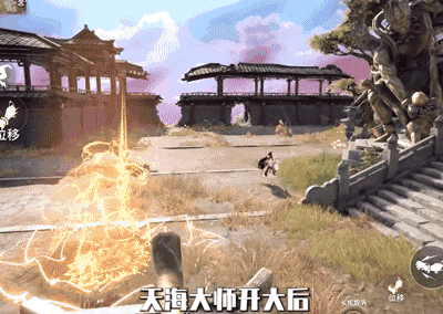 天海大师开启大招后,若遇上妖刀姬奥义,我们可以直接上划视野,然后先点击跳跃键,再立刻点击位移键,此时我们就能完成一段超远距离的跳跃。