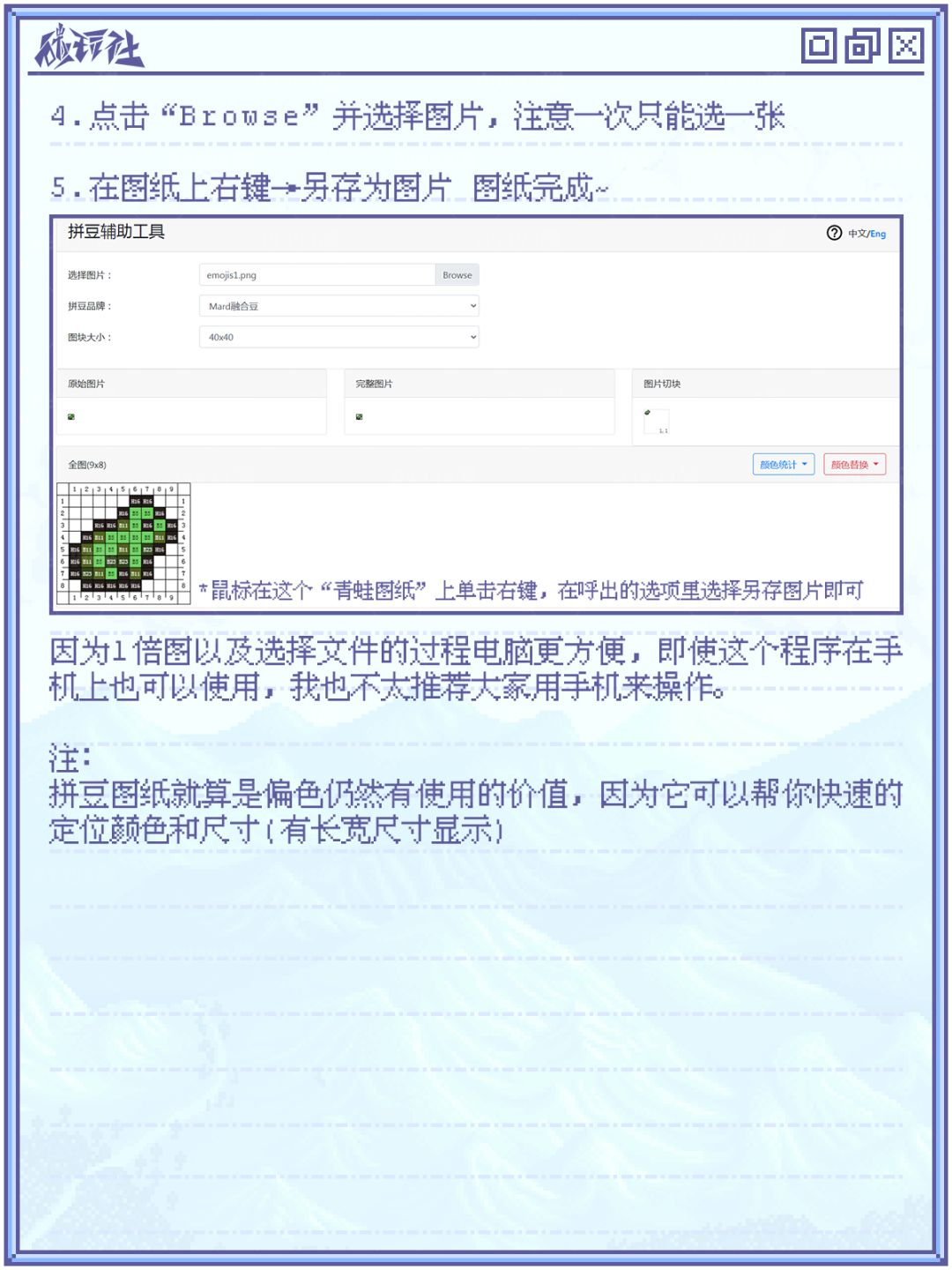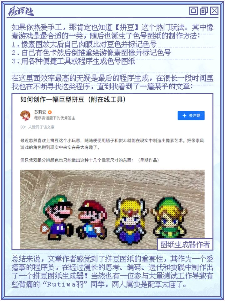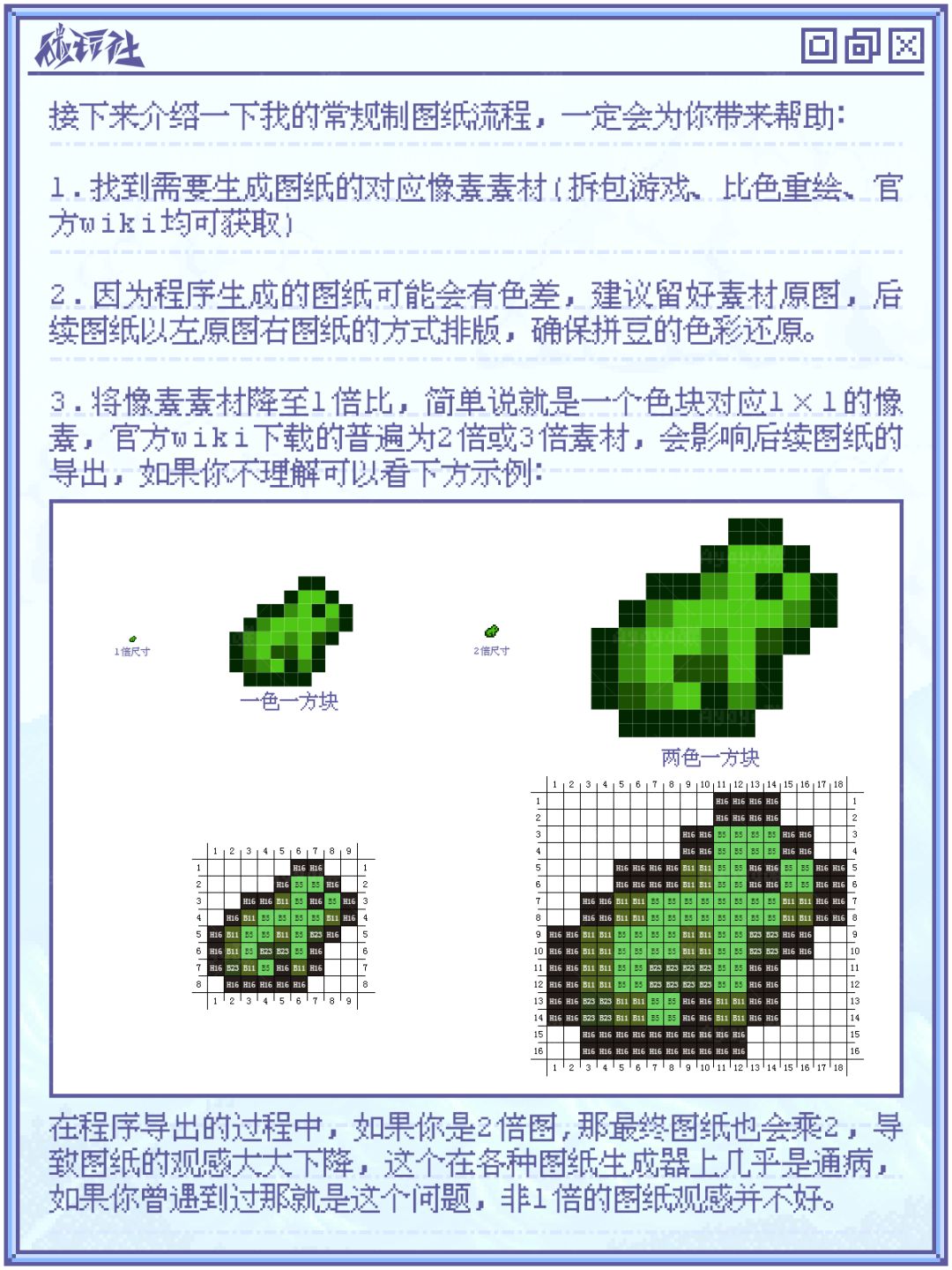 其中像素游戏是最合适的一类,随后也诞生了非常多色号图纸的制作方法。