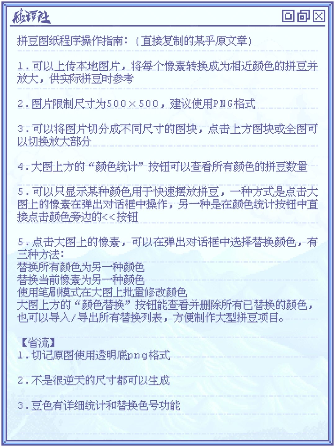 在此我也向大家分享自己是如何快速制作拼豆图的,以及安利一个“宝藏”图纸生成器!