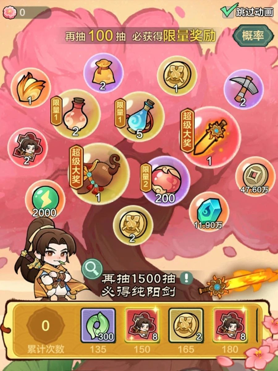 3、珍宝需要消耗桃花糕来抽取,500抽必得坐骑,1500抽必得神兵。
