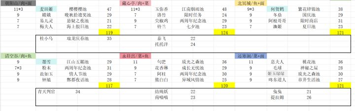 现在玉没有那么紧缺,于是改了几个采集厨下来。图一中数值均为满心法盘无厨具,清空谷不上判官只能用厨具到120。另外框里的厨子为瑞龙庆春之后的双绿孔厨,可以看需求更换