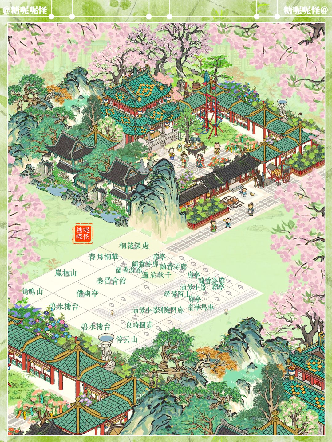 建筑:秦晋会馆,良时回廊,碧水楼台,停云山,别院门廊,借幽亭,兰香回廊,廊亭,岚栖山,鹤鸣山,桐花深处,春月桐华