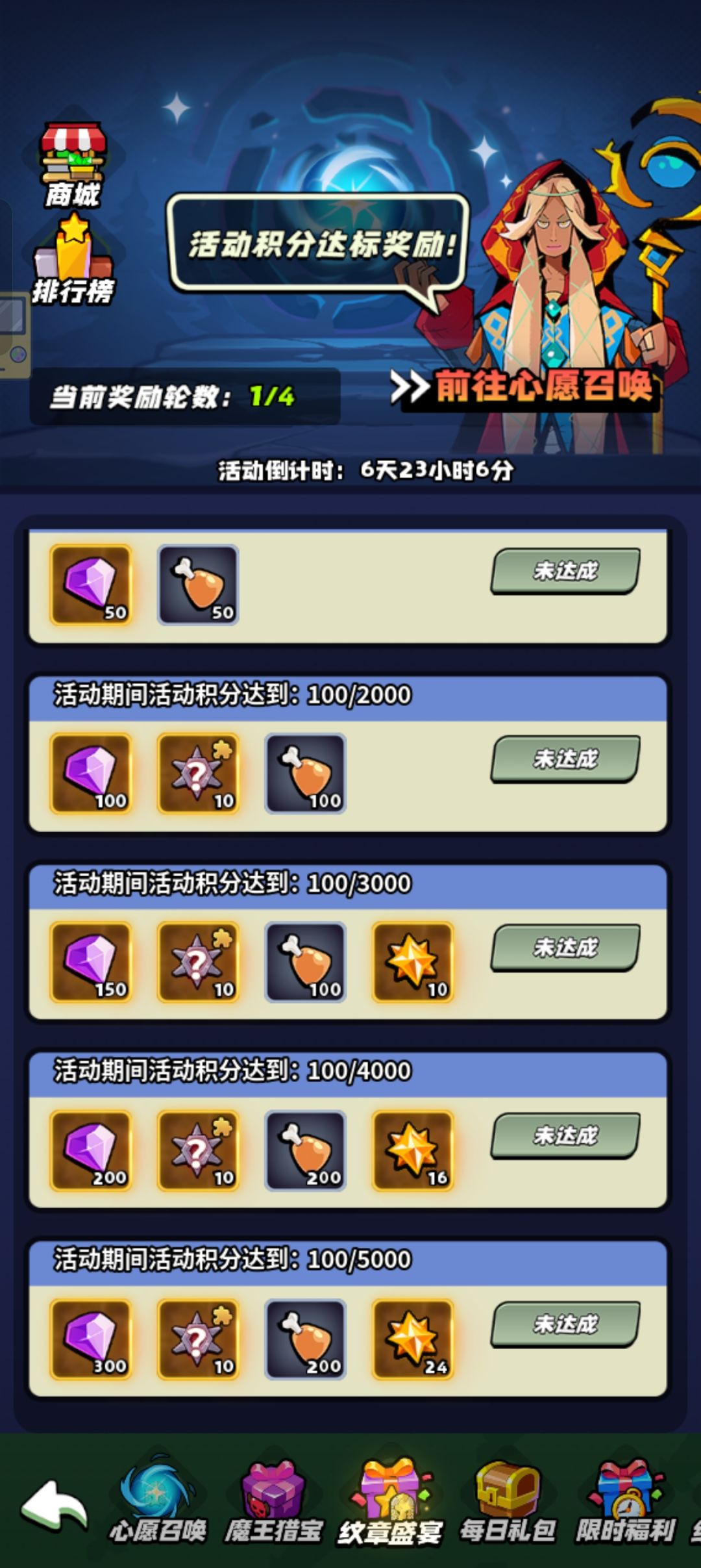 心愿积分就是下面截图的积分排行榜,190一抽是算100积分,这个每日限定兑换,要去刷怪掉落兑换道具。