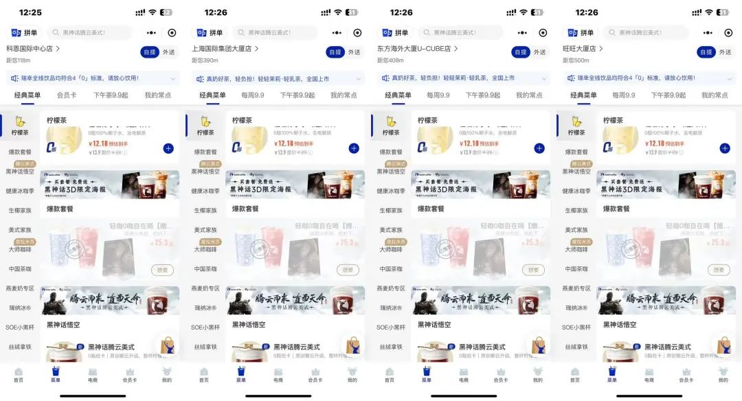 8月19日,《黑神话:悟空》正式发售的前一天,线下各大瑞幸门店已提前上演了众人“抢”着进入的名场面。今早才刚刚上线的“瑞幸×《黑神话:悟空》”联名套餐被抢购一空,购买套餐限量赠送的周边炫卡、海报也纷纷售罄。