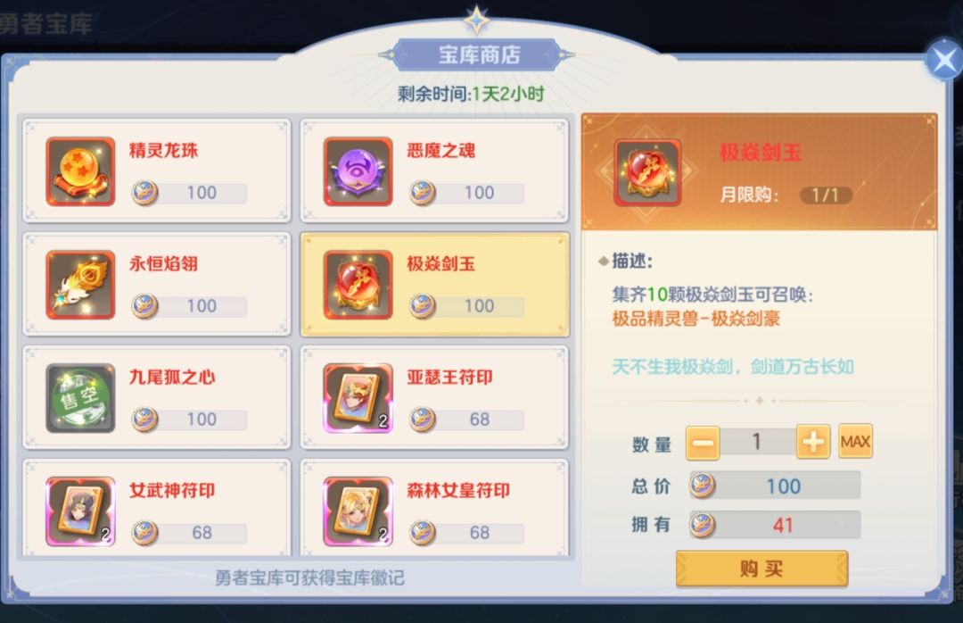 潜能宝库跟赛季一样,一个月一轮回,必买稳赚不赔,宝库积分前期在没有更新精灵兽材料的时候存着,后续开放只考虑买精灵兽材料,看需求合成精灵兽或者熔炼材料给精灵兽开天赋用。
