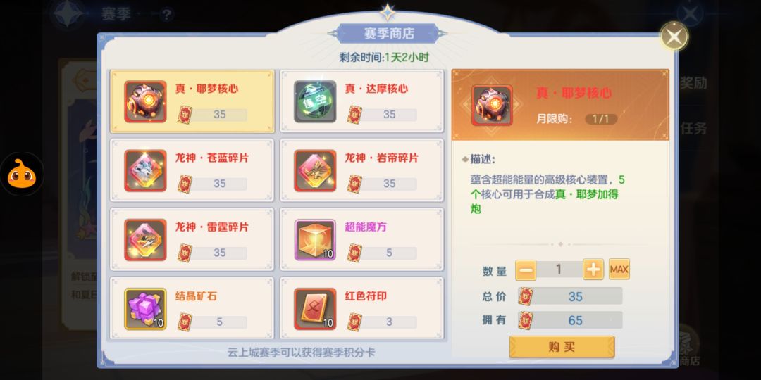 一个月一轮回的赛季稳赚不赔必买,前期赛季积分没有东西换就存着,后续更新出超能战甲核心或者圣魂技碎片的时候只换这两个,其他不换。