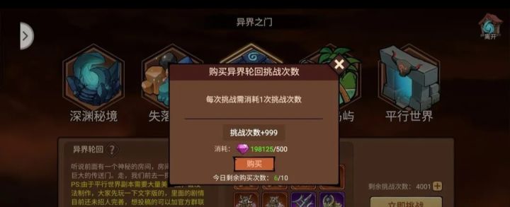1-10级,新手期,正常推图前期最主要的任务就是推图,越后面的图经验越多,奖励越高,前期掉什么穿什么,推不动图时适当强化一下装备,鉴定随便点一下等,用极低的资源换尽可能高的属性。低等级魔核也可以装,魔核有个小技巧,假如你的魔核是绑定的,不需要同过解绑卷轴,只需要把他装到装备上再取下来就解绑了。在装有魔核的装备上再装魔核就会被覆盖,装魔核眼要准手要稳。好的,你刷完了体力,或者体力还有很多但是因为装备太差推不动图时,可以通过挑战深渊副本来获取一些装备继续推图。深渊每天有10次的免费次数,可以通过钻石购买,再次获得25次挑战次数,深渊次数会在10次的基础上每天0点刷新,而购买的次数不会被刷新掉
