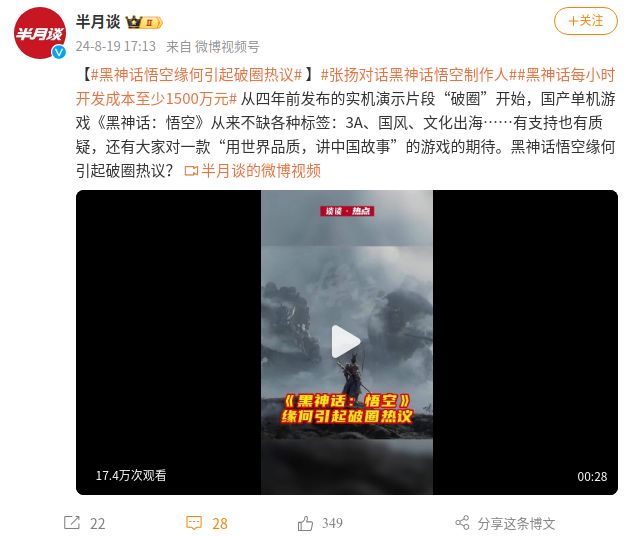 单就中国的游戏行业、产业来说,国内的行业领军巨头将这个本应富有创造力的产业肆意捏成了商人逐利的市场,同时通过强大影响力和财力甚至包括是黑客等技术手段不断打压、收购中小潜力游戏厂商,垄断市场。中国游戏行业长期以来可谓死水一潭,偶尔有一些心有梦想的年轻团队想要螳臂挡车,但在庞大的资本面前却翻不起几点水花。然而凡事皆有例外,国内的游戏行业发展到今天有两个重要的反围剿时刻。一个是当时的小厂米哈游,不畏强权,创造出了全球游戏排行榜长期靠前的网络游戏《原神》。另一个就是国内第一款对标3A的游戏《黑神话 悟空》。这款游戏几年前第一次发布概念PV即引发业内轰动。近几年的发展历程也有不少波澜,但随着黑神话8月即将上线,国内终于可能迎来第一款3A大作。希望这是能够革新今后国内游戏行业的一次机会,希望国人心中的悟空永远不负所有人的期待。#黑神话悟空