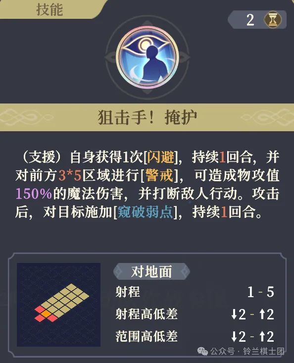 3阶算是小骗豆阶,左侧狙击手!掩护,是一个大范围的警戒技能。伤害可以享受个性的警戒伤害提升。
